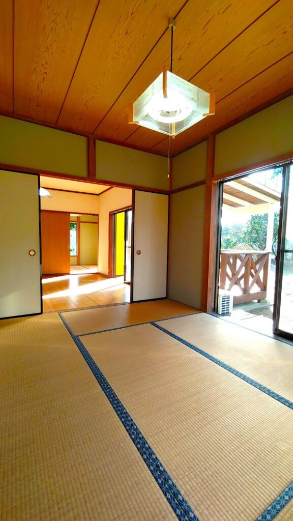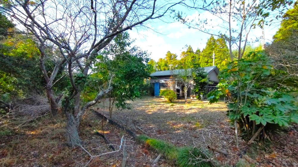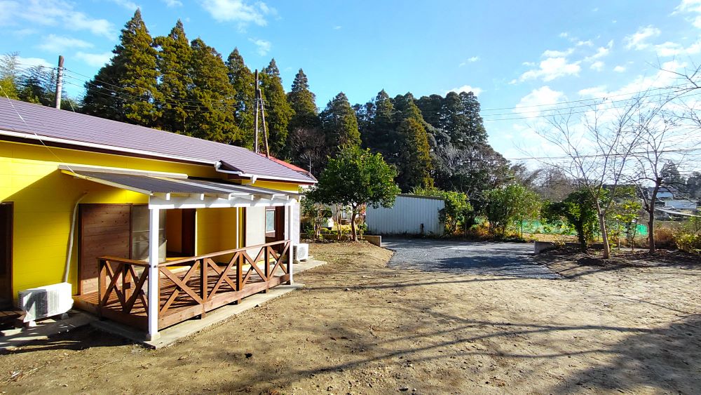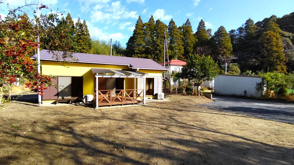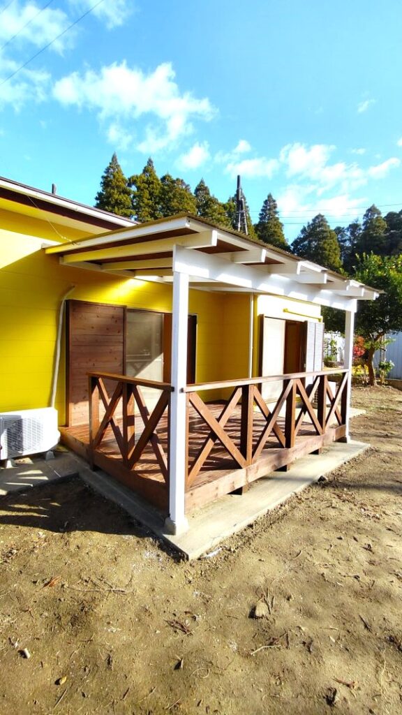 いすみ市岬町押日のこの場所は、敷地内の木々がボサボサになってしまったり、デッキも布で覆われてしまったりと色々な要素が相まって、全体的なかわいいフォルムから出てくるほっこり感やみかん、柿、梅、ゆず、ビワなどの果樹が実る広々した楽しげな土地、愛嬌たっぷりのDIY&最高なイラスト!などなど持っている潜在能力が埋もれてしまった状態でした。。。